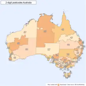 The first one or two numerals usually show the state or territory that the postcode belongs to