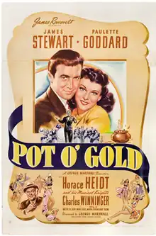 Pot o' Gold is a 1941 American romantic musical comedy film starring James Stewart and Paulette Goddard, directed by George Marshall,[2] and based on the radio series Pot o' Gold. The film was released April 3, 1941, eight months before the NBC radio series came to an end. Paulette Goddard's singing voice was dubbed by Vera Van. The film was known as The Golden Hour in the United Kingdom and was re-released in 1946 by Astor Pictures as Jimmy Steps Out.