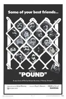 Pound is a 1970 American comedy film written and directed by Robert Downey Sr.[1] It was based on The Comeuppance, an Off-Off Broadway play written by Downey in 1961. It is about several dogs, along with a Siamese cat and a penguin, at a pound, as they await being euthanised; the animals are played by human actors. The film is best known for marking the acting debut of Downey's son and namesake, then-5-year-old Robert Jr., as Puppy.