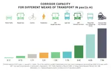 Comparative passenger capacity per hour of various modes of transport