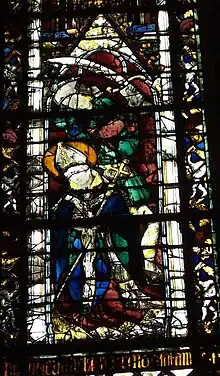 Praetextus was assassinated at his own church in Rouen on 24 February 586.[8] Gregory of Tours implies strongly that this was arranged by Queen Fredegund. The assassination, he writes, occurred shortly following a "bitter exchange of words" between the two.[9] Fredegund visited Prætextatus on his deathbed. At this meeting he accused her of having organised the whole thing. It is likely that this was a fair accusation given that Fredegund later had the man who committed the act beaten – this man subsequently implicated her in the assassination plot.[10] It is not, however, certain that Fredegund was behind the assassination, as is exemplified by a later passage in which King Guntram refers to the event as remaining worthy of investigation.[11]