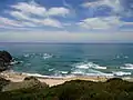 The beach of Praia do Vale dos Homens is inside the Vicentine Coast Natural Park.[2] This secluded beach can be difficult to reach as visitors to the beach must negotiate a flight of 285 wooden steps down to the beach from the cliff above (where the car park is located). The surrounding countryside is made up of large areas of farmland and pine forests. The beach is popular for sports such as Kite surfing, Windsurfing, and bodyboard surfing. The sea here is designate with a yellow flag is considered too dangerous for swimming as there are potentially hazardous rock formations. Natural pools formed in the rocks near the waterline (in low tide) are popular among visitors as the water is slightly warmer and somewhat shielded from wave action. On the sidewalls of these pools numerous sea creatures can be seen.