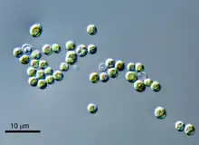 Prasinoderma is a genus of green algae in the phylum Prasinodermophyta.[1] Both species in the genus are unicellular, but P. coloniale forms loose sticky colonies.[2]