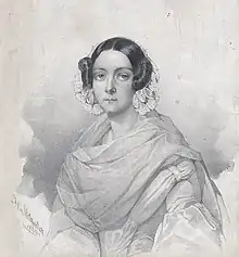 Their wedding took place on November 3, 1826 in the Court Cathedral in the Winter Palace.[11] “Pashinka Khilkova has been Countess Gendrikova for a week now,” wrote Alexandra Voeikova, “and they say she is very pleased and happy”.[12] After her husband's resignation, she lived in Kharkiv from 1832. At the ball given on the occasion of the arrival of Tsarevich Alexander in the city on October 12, 1837, Countess Gendrikova, as Semyon Yurievich, was "a la tete de la societe de Kharkov" (at the head of society of Kharkov) and danced with the heir.[13] Together, they had three sons and one daughter: