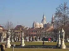 Prato della Valle (Prà de ła Vałe in Venetian) is a 90,000-square-meter elliptical square in Padua, Italy. It is the largest square in Italy,[1] and one of the largest in Europe. Today, the square is a large space with a green island at the center, l'Isola Memmia, surrounded by a small canal bordered by two rings of statues.