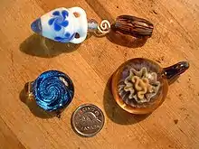 Contrarily, another type of glass bead that has a limited supply, is known as wound beads. Wound beads are far more rare when being compared to drawn beads and the way they are made is by sheathing molten glass around a rod, stick, or wire. Wound beads on the other hand are made by wrapping molten glass around a rod, stick, or wire, then pressed into its shape and placed in a mold or decorated with colors of glass. These Wound beads are far more rare to find due to the limited distributions. These beads are recognized by having their fabric and inclusions encircling the perforation.[1]