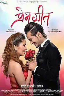 Prem Geet is a 2016 romantic film directed by Sudarshan Thapa in Nepal. The film was produced by Santosh Sen & Hari K C and features Pooja Sharma and Pradeep Khadka in lead roles. The film was released on Valentines Day 2015. The film met with positive responses from critics and audience. The film was a commercial success. The film marked turning point in career of the lead actor Pradeep Khadka and Pooja Sharma and made them huge stars. The movie earned much of the investment on its first week of release.[2][3][4][5][6]