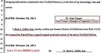 On October 17, 2013, Brett Gibbs offered a sworn statement, an unsworn motion, and alleged documents and claims concerning Prenda and its principals as part of an appeal against his sanction.[2][66] The allegations and claims included: