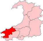 ![]() Preseli Pembrokeshire shown within the Mid and West Wales electoral region and the region shown within Wales | |