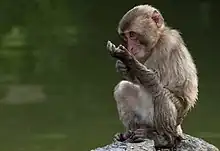 - ↑ Huffman, Michael A.; Quiatt, Duane (1986). "Stone handling by Japanese macaques (Macaca fuscata): Implications for tool use of stone". Primates. 27 (4): 413–423. doi:10.1007/BF02381887. ISSN 1610-7365. S2CID 25426387.