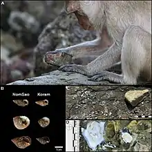 - 1 2 Malaivijitnond, Suchinda; Lekprayoon, Chariya; Tandavanittj, Nontivich; Panha, Somsak; Cheewatham, Cheewapap; Hamada, Yuzuru (2007). "Stone-tool usage by Thai long-tailed macaques (Macaca fascicularis)". American Journal of Primatology. 69 (2): 227–233. doi:10.1002/ajp.20342. PMID 17146796. S2CID 24117181.