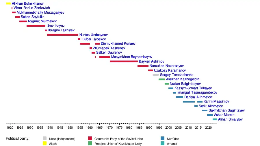 - Nursultan Nazarbayev (22 March 1984 – 27 July 1989)