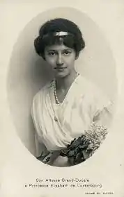 Princess Elisabeth of Luxembourg (Elisabeth Marie Wilhelmine; 7 March 1901 – 2 August 1950) was the daughter of William IV, Grand Duke of Luxembourg, and his wife, Infanta Marie Anne of Portugal.