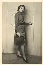 Joséphine-Charlotte first attended school at the Royal Palace, where a small class had been organized for her.[1] She and her brothers went through a short period of exodus in France and Spain just after the surrender in 1940.[3] At the end of 1940, she entered the Boarding School of the Faithful Virgin in Brussels and studied there until 1942.[3][1] After that, she continued her education with her own private teachers at the Royal Palace of Laeken, where her family was held prisoner.[3] On 7 June 1944, the day after the Allied Forces landed in Normandy, France, she and her father were sent to Germany and kept there under house arrest. The Royal Family, which included her brothers Baudouin and Albert, her half-brother Alexandre, and their stepmother Princess Lilian, was freed on 7 May 1945 and settled in Prégny, Switzerland until 1950.[1][3]