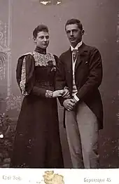 Princess Louise's grandmother, Queen Louise, was known for her successful matchmaking skills. She recognized early on that her granddaughter had a tendency towards melancholy and wanted her to marry well. Through her German relations, Queen Louise was in contact with a cadet branch of the German princely house of Schaumburg-Lippe, which possessed the castle and lordship of Náchod in northeastern Bohemia as a secundogeniture. Thus, Princess Louise was introduced to her half-cousin Prince Frederick of Schaumburg-Lippe (1868–1945). He was a son of Prince William of Schaumburg-Lippe by his wife, Princess Bathildis of Anhalt-Dessau. The couple were engaged in 1894, and the wedding was celebrated on 5 May 1896 at Amalienborg Palace in Copenhagen.[1]