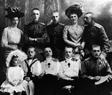 Princess Vera was eight years old when Archduke Franz Ferdinand of Austria was assassinated and World War I broke out, in the summer of 1914. Vera was with her parents and her brother George in Germany visiting her maternal relatives in Altenburg at the start of the war. The conflict took them by surprise, trapping them in Germany, an enemy country. It was thanks to the intervention of the German Empress, Augusta Viktoria of Schleswig-Holstein that they were allowed to return to Russia.[3] Vera's older siblings joined the Russian army in the military effort, and her favorite brother Oleg was killed in action. She was considered too young and was not allowed to attend her brother's funeral. Her brother's death was just the first of many family misfortunes.