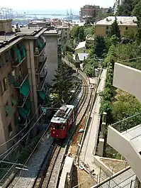 The Principe–Granarolo rack railway (Italian: Ferrovia Principe-Granarolo) is a rack railway in the Italian city of Genoa that connects via del Lagaccio, near the Genoa Piazza Principe railway station, to the Granarolo hills. The line is sometimes erroneously described as a funicular and listed alongside the city's Zecca–Righi funicular, the Sant'Anna funicular and the Quezzi funicular. The line is managed by AMT Genova, which manages the city's public transport.[1][2]