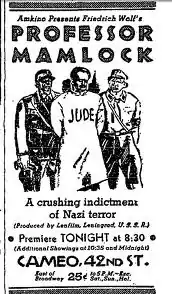 ![]() An advertisement for Professor Mamlock, published in the New York Times on the day of its American premiere. | |