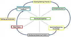 The model has evolved from the initial cognitively oriented one toward versions that highlight pragmatic and socio-cultural aspects of inquiry. It describes the elements of expert-like knowledge practices in a form of a cyclic inquiry process. It relies on cognitive research on education and is closely associated with the knowledge building approach of Marlene Scardamalia, Carl Bereiter and the Interrogative Model of Inquiry introduced by Jaako Hintikka.[7][8]