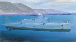 Development of diving boats resumed at the end of the 1950s in the form of Project 662, which was rejected because of the low surface speed of 32 knots. The use of hydrofoils increased the speed of to 45-50 knots, but reduced the range to an unacceptable value. The underwater speed was only 5-6 knots, making the project unfit for combat.[1]