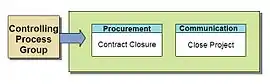 There are five phases to a project lifecycle; known as process groups. Each process group represents a series of inter-related processes to manage the work through a series of distinct steps to be completed. This type of project approach is often referred to as "traditional"[30] or "waterfall".[31] The five process groups are: