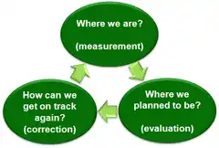• Monitoring the project variables (cost, effort, scope, etc.) against the project management plan and the project performance baseline (where we should be);