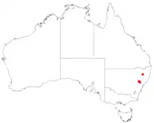 This mint bush grows in forest in gullies, often in rocky sites in the Sandy HollowMerriwa district.[2][3][4]