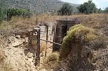 Ruins of the wall of the dromos and doorway of the Prosymna Tholos in Prosymna village