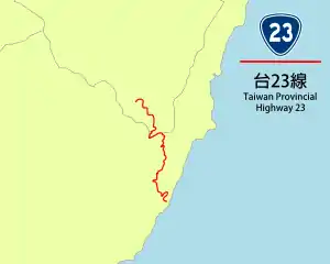 Provincial Highway 23 or Futung Highway (Chinese: 台23線) is a highway starting at Fuli, Hualien and ending in Donghe, Taitung in Taiwan. The route length is 45.4km and connects Provincial Highway No. 9 and Provincial Highway No.11 by through Hai'an Range.