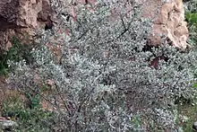 Prunus scoparia is a wild almond found in Turkey, Iran, Turkmenistan and Afghanistan. It is a xerophytic shrub and it has been used as a grafting stock for domesticated almonds to provide drought resistance.[1][2]