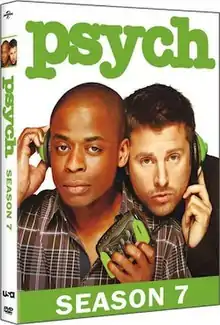 Psych: The Complete Seventh Season, consisting of 14 episodes, was released on DVD on October 8, 2013.[27] The three-disc set is presented in anamorphic widescreen format, English Dolby Digital 5.1 surround sound, and with English subtitles. The bonus features of the set include a director's cut of the episode "100 Clues", deleted scenes; a gag reel, five video podcasts featuring producers, writers, and directors, and "Psychouts." The entire running time for the set is 10 hours, 13 minutes.[28] The episode "Psych: The Musical" was released separately on DVD on December 17, 2013, just two days after airing.[29]