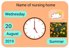 The aim of cognition-oriented treatments, which include reality orientation and cognitive retraining is the restoration of cognitive deficits. Reality orientation consists in the presentation of information about time, place or person in order to ease the understanding of the person about its surroundings and his place in them, for example using an orientation board. On the other hand, cognitive retraining tries to improve impaired capacities by exercitation of mental abilities. Both have shown some efficacy improving cognitive capacities,[19][20] although in some works these effects were transient and negative effects, such as frustration, have also been reported.[10] Most of the programs inside this approach are fully or partially computerized and others are fully paper based such as the Cognitive Retention Therapy method.[21][22]
