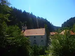 The local parish church is dedicated to Mary Help of Christians (Slovene: Marija Pomočnica) and belongs to the Roman Catholic Archdiocese of Maribor. It is a pilgrimage church built between 1668 and 1672 on the site of an earlier chapel of which only part of the belfry survives.[3]