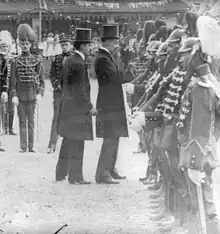 The Army, one of the armed branches of the central power, was on the verge of collapse in the late 1890s.[3] It was small, unprepared[4] and of little operational capacity.[5] It was divorced from the civilian elites, especially in São Paulo and Minas Gerais,[6] and was not yet a "national organization capable of effectively planning and executing a defense policy in its broadest sense". It gradually approached this ambition over the period.[7] The political system left a secondary role to the Army, which should solve what the local forces could not handle. There was still theoretically the National Guard, and in times of crisis local colonels mobilized "patriotic battalions" with their peons and henchmen.[8][9] Thus, there were armed troops other than the Army.[10]
