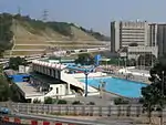 The main pool at Lei Cheng Uk Swimming Pool complex, opened 1971 as one of many funded by the Royal Hong Kong Jockey Club.[2]