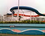 Victoria Park Swimming Pool, built and managed by the Urban Council and funded by the Hong Kong Jockey Club, was the first public swimming complex in Hong Kong. The 50 by 20 metre pool was officially unveiled on 16 October 1957 by former Governor Sir Alexander Grantham. It was highly popular with residents, and served over 360,000 over its first year of operation.[3] The spectator stand seated 1,700. This facility operated continuously until 2013, when it was closed and replaced by a new indoor swimming pool (of the same name) on the site adjacent. The old pool will consequently be demolished, sparking some mourning of the loss of a piece of the collective memory of many Hong Kong residents. In response, the LCSD stated they would "explore the possibility" of displaying some items of historical significance, such as the plaque unveiled by Governor Grantham, at the new facility, and planned to make use of "3D laser scanning technology" to record the architecture of the old pool complex.[3]