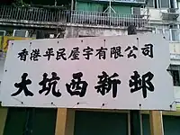Tai Hang Sai Estate (Chinese: 大坑西邨) is a private housing estate in Shek Kip Mei, located between Shek Kip Mei Estate and Tai Hang Tung Estate, near MTR Shek Kip Mei station. It consists of 8 residential buildings which were built in 1965 and 1977 respectively. The estate was built and managed by a privately owned company called "Hong Kong Settlers Housing Corporation Limited" (Chinese: 香港平民屋宇有限公司).[14]