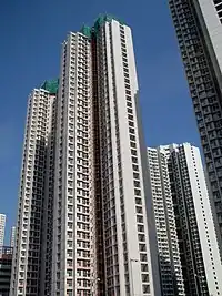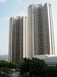Grandeur Terrace (Chinese: 俊宏軒) is a public housing estate in Tin Shui Wai.[1] It is the only estate in Tin Shui Wai which its name does not have the prefix "Tin" (Chinese: ). It was a HOS and PSPS court, and it is the largest PSPS in Hong Kong with 4,100 residential units.[50][51] It was jointly developed by the Housing Authority and Rich Score Development Ltd, a wholly owned subsidiary of Chun Wo Holdings Limited.[52] It started construction in 2000 and was completed in 2003. When completion, the estate was transferred to public rental housing.[53]