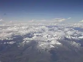 ![]() Cordillera Blanca as seen from the west with Pucagaga Punta and Churup (lower-right) | |