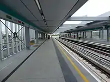 When all the other platforms on the DLR's Stratford branch were extended to accommodate three-car trains, Pudding Mill Lane remained with a two-car platform, instead using selective door operation.[11] The lack of platform extensions in this case was due to the pending rebuild of the station.
