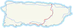 Puerto Rico Highway 1 (PR-1) is a highway in Puerto Rico that connects the city of Ponce to San Juan. Leaving Ponce, the road heads east and follows a somewhat parallel route along the southern coast of the island heading towards Salinas. At Salinas, the road turns north to cut through the Cordillera Central in its approach to San Juan. Before reaching San Juan, it climbs to make its way to the mountain town of Cayey and then it winds down into the city of Caguas on its final approach to San Juan.[3]
