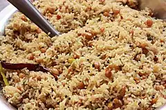 Pulihora, also known as Pulisoru, Pulinchoru, Puliyogare, Puliyodarai, Ambad Baath, Kokum Rice, or simply Tamarind Rice, is a common and traditional rice preparation in the South Indian states of Karnataka, Kerala, Tamil Nadu, Andhra Pradesh and Telangana.[1] Puli means 'tangy' or 'sour' in South Indian languages, referring to the characterizing use of kokum or tamarind as one of the main ingredients.