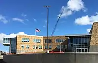 The present campus opened 51 years ago in September 1972 as an "open concept" design with minimal walls.[5] It is located on Military Hill at the northwest outskirts of the city. The $2.8 million bond for the new school was approved by voters in November 1969, with 61.5% in favor.[6]