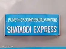 - ↑ "Pune-Secunderabad Shatabdi Express/12025". Indiarailinfo. Retrieved 3 February 2012.