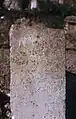 Most of the inscriptions include a general dedication (the ʾŠ NDR part), but a minority of them include a certain specific vowed object(s): obelisks and masks,[4] copper altar,[5] wooden cart/carts/female calf,[6] et cetera. Some of the inscriptions describe the stele of the vowed object as a gift, mostly in the version ʾŠ YTN ("which gave", as opposed to ʾŠ NDR) or with MTNT ("gift"),[7][8][9][10][11][12][13] and some mix both the gift and the vow versions.[14] Some inscriptions are made in an extremely short formula, including only the vower's name and the word NDR (as a noun – "the vow of")[15] or MTNT ("the gift of").[16] The closing statement rarely appears as "for he/she/they heard the voice of his words".[17] There are also some exceptions in the order of the parts of the standard formula.[18] A few inscriptions warn a potential thief that Tinnit or Baal Hammon, to whom the stelae were dedicated, will punish him.[19]