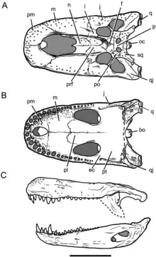 - ↑ Rio, Jonathan P.; Mannion, Philip D. (September 6, 2021). "Phylogenetic analysis of a new morphological dataset elucidates the evolutionary history of Crocodylia and resolves the long-standing gharial problem". PeerJ. 9: e12094. doi:10.7717/peerj.12094. PMC 8428266. PMID 34567843.