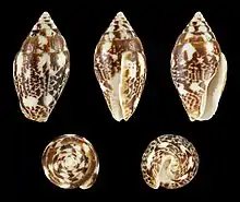 Pyrene flava, common name : the yellow dove shell, is a species of sea snail, a marine gastropod mollusk in the family Columbellidae, the dove snails.[1]