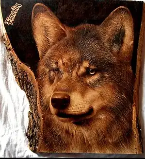 Pyrographer Robert Boyer hypothesizes that the art form dates back to prehistory when early humans created designs using the charred remains of their fires.[4] It was known in China from the time of the Han dynasty, where it was known as "Fire Needle Embroidery".[5] During the Victorian era, the invention of pyrography machines sparked a widespread interest in the craft, and it was at this time that the term "pyrography" was coined (previously the name "pokerwork" had been most widely used)[6] In the late 19th century, a Melbourne architect by the name of Alfred Smart discovered that water-based paint could be applied hot to wood by pumping benzoline fumes through a heated hollow platinum pencil.[7] This improved the pokerwork process by allowing the addition of tinting and shading that were previously impossible. In the early 20th century, the development of the electric pyrographic hot wire wood etching machine further automated the pokerwork process, and Art Nouveau pyrographic gloveboxes and other works were popular in that era. Pyrography is a traditional folk art in many parts of Europe, including Romania, Poland, Hungary, and Flanders, as well as Argentina and other areas in South America.