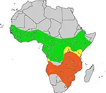 - ↑ Alexander, G.J.; Tolley, K.A.; Penner, J.; Luiselli, L.; Jallow, M.; Segniagbeto, G.; Niagate, B.; Howell, K.; Beraduccii, J.; Msuya, C.A. & Ngalason, W. (2021). "Python sebae". IUCN Red List of Threatened Species. 2021: e.T13300572A13300582. Retrieved 2 December 2021.