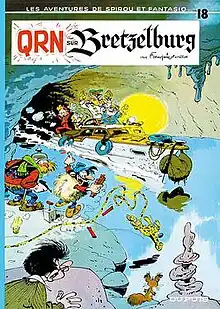 QRN sur Bretzelburg (Eng. Lit., QRN over Bretzelburg), written by Franquin and Greg, drawn by Franquin with assistance by Jidéhem, is the eighteenth album of the Spirou et Fantasio series. The story was initially serialised in Spirou magazine under the name QRM sur Bretzelburg over an unusually long period (including a break in 1962), before a delayed hardcover album release in 1966.